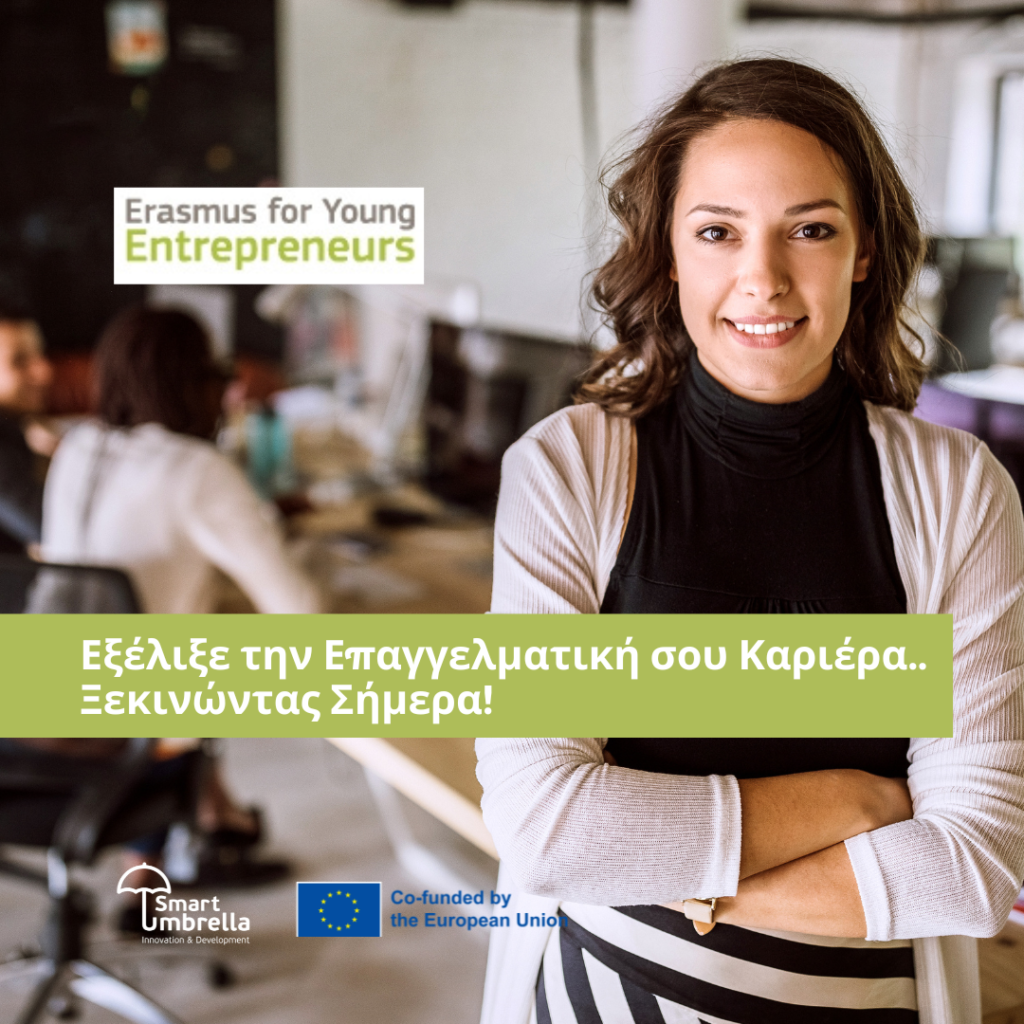 Μπες στο www.erasmus-entrepreneurs.eu, υπόβαλε το βιογραφικό και το επιχειρηματικό σου σχέδιο και επίλεξε την Smart Umbrella για να σε βοηθήσει σε αυτήν την καταπληκτική ευκαιρία!